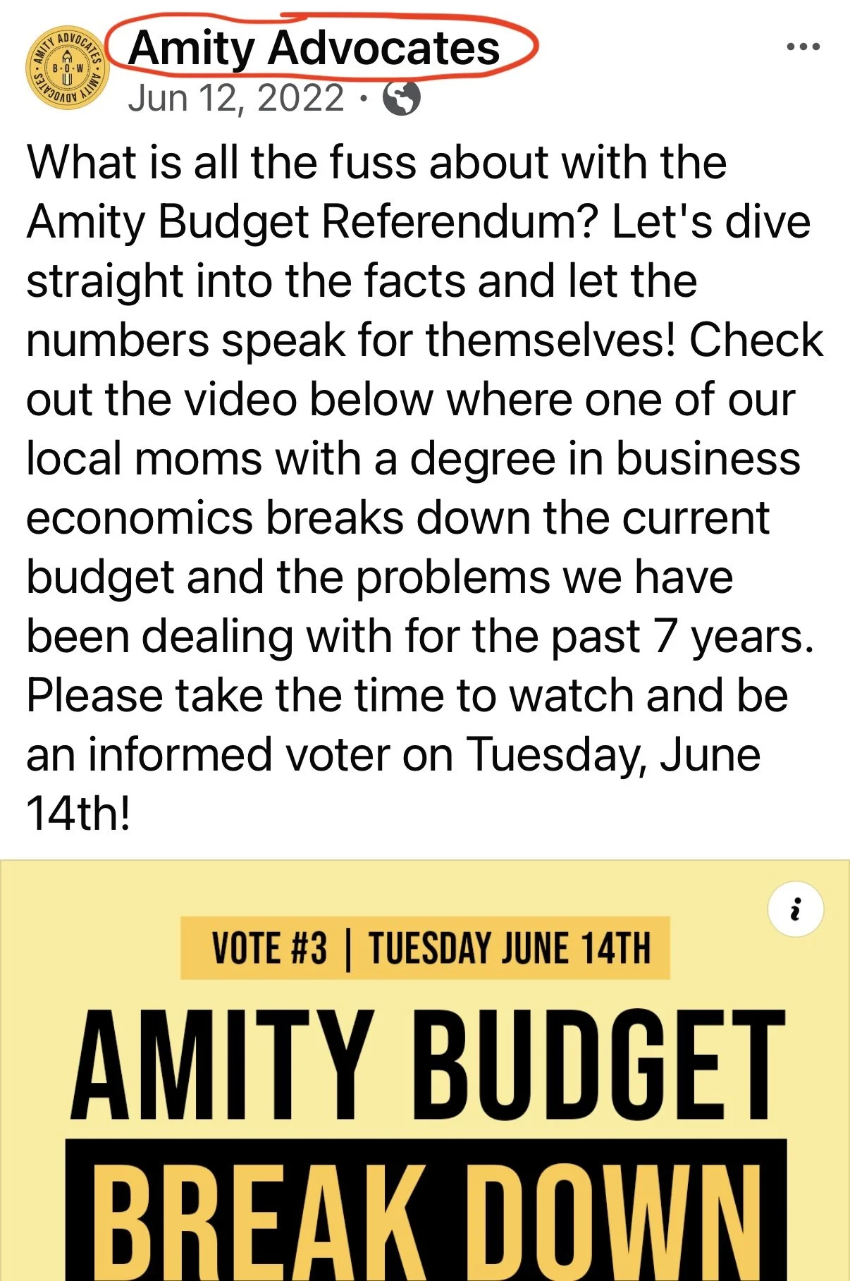 - Screenshots from the coordinated effort to defeat Amity’s budget at referendum in 2022, including Ms. Rabuse’s video contribution to that effort